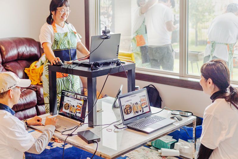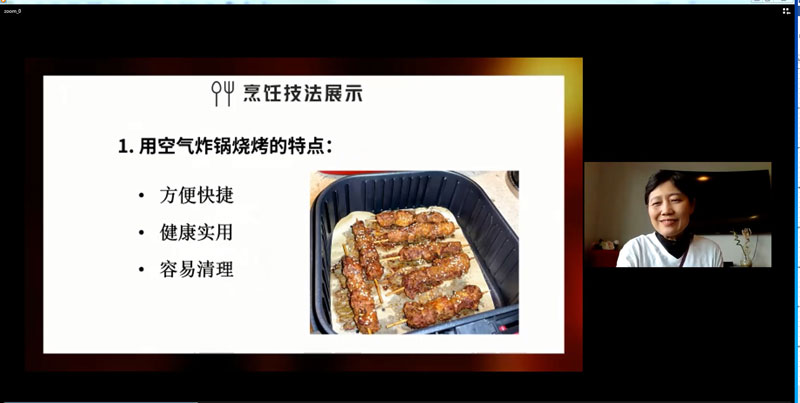 活动当天,好像是为了配合线下的室外活动,已经下了很久的雨在中午就停了下来。很多义工早早来到现场,布置会场,调试设备,引火,串肉。活动开始后,几位成员在室内不停地展示与讲解,时而切换到室外的烧烤现场,给人以耳目一新,如临其境的感觉。由于烧烤的特点,仅仅靠幻灯片的讲解显然没有很好的示范效果,而亲眼目睹现场的实际操作,明显增加了感性认识和可操作性,大大提升了展示的效果。为了保障室外直播现场的网络信号和Zoom线上主播室的网络信号互相不干扰,彭继伟专门规划和设制了Wifi信号的不同通道,保障了各部机器的正常运作。由于事先做了预演,对可能的问题和困难做了针对性的预案,整个活动没有任何纰漏,效果非常好。