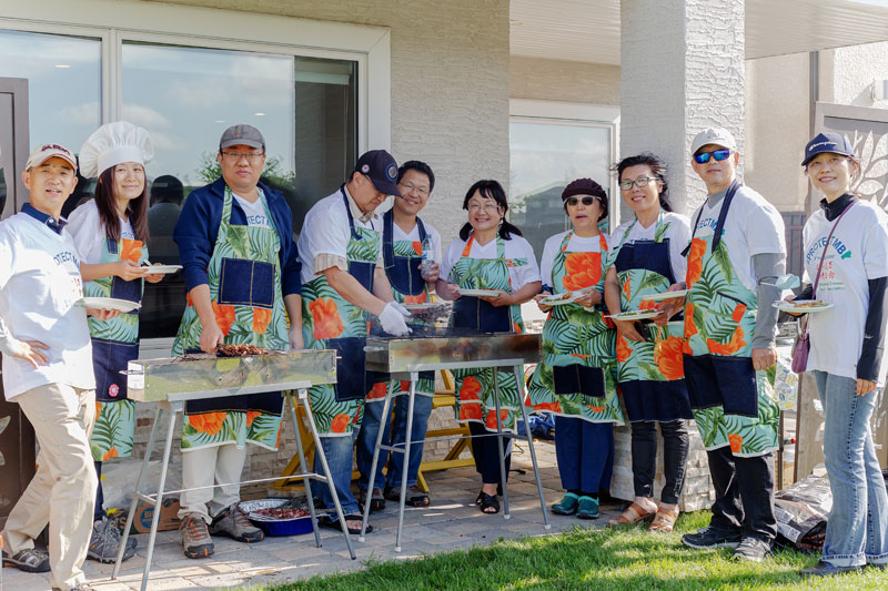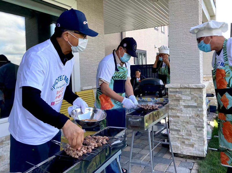 老年协会厨艺群的筹备组五位成员(柴健,丛岩,姜彦,刘晓梅和熊飞),为了这场活动,她/他们事先召开了三次准备会,就活动的每一个步骤和衔接所有细节做了充分的讨论和安排。由于曼省的禁火令和天气预报的雷阵雨,活动的具体日期做了两次延后修改。