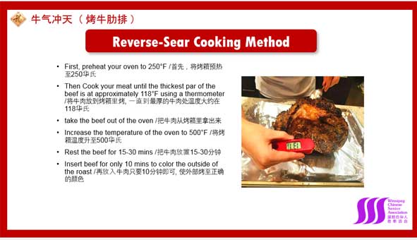 大家也一定注意到了在这次参展的大厨们中间出现了一位眉清目秀的年轻人,仿佛是晚会上的一个亮点,令人耳目一新。他是一位在加拿大出生长大的华裔孩子,名字叫Michael Guan,是曼大三年级的学生,在学习任务繁重的情况下仍然主动地参加了我们的厨艺美食展活动。他用流利的英语给大家介绍了一款叫“牛气冲天”(烤牛肋排)的菜肴,小小年纪,讲得头头是道,显而易见也是一位厨艺爱好者。据了解他还是老年协会义工队伍中的“常客”,在疫情之前的老协活动中经常帮助布置会场,有时也作为主持人和翻译出现在老年协会的活动中,勤快、机灵,深得大家的喜爱。现在的孩子大多养尊处优,作为家长为了让孩子得到更多的锻炼,经常的鼓励也是孩子愿意做义工的动力。希望家长们都能像Michael的家长一样把对孩子的大爱落实到行动上。