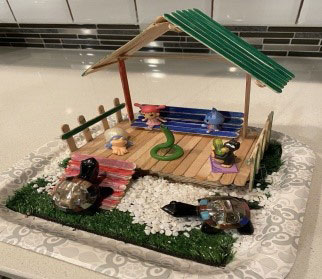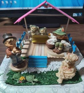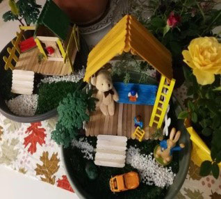 在活动开始之前,Dani女士花费了大量的时间,在各个商店采购,诸如:一些长的和短的小木片、小石子、小盘子、和人工草皮等。在云端课堂上又耐心地教大家用这些长的和短的的小木片做成阳台、房子、楼梯、长椅和围栏的模型,然后把这些模型用胶粘合在一起,组成了一个漂亮的盆景模型,并用丙烯颜料涂上自己喜欢的色彩,再摆上一些小的装饰品,如:小动物、植物、小人等等,这样一件可爱的手工盆景就做成了。随后大家在微信群里纷纷地晒出了自己的作品,琳琅满目、创意多多、洋溢着一片开心、快乐的热闹气氛。开心快乐总是会溢于言表,活动以后会员们发来了许多感言和评论,对Dani 老师的手工制作公开课表示了感谢和喜爱,同时也对老年协会能组织这么多有益身心健康的活动赞不绝口,参加这次公开课的有80人或家庭。