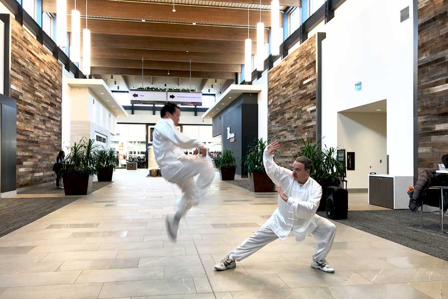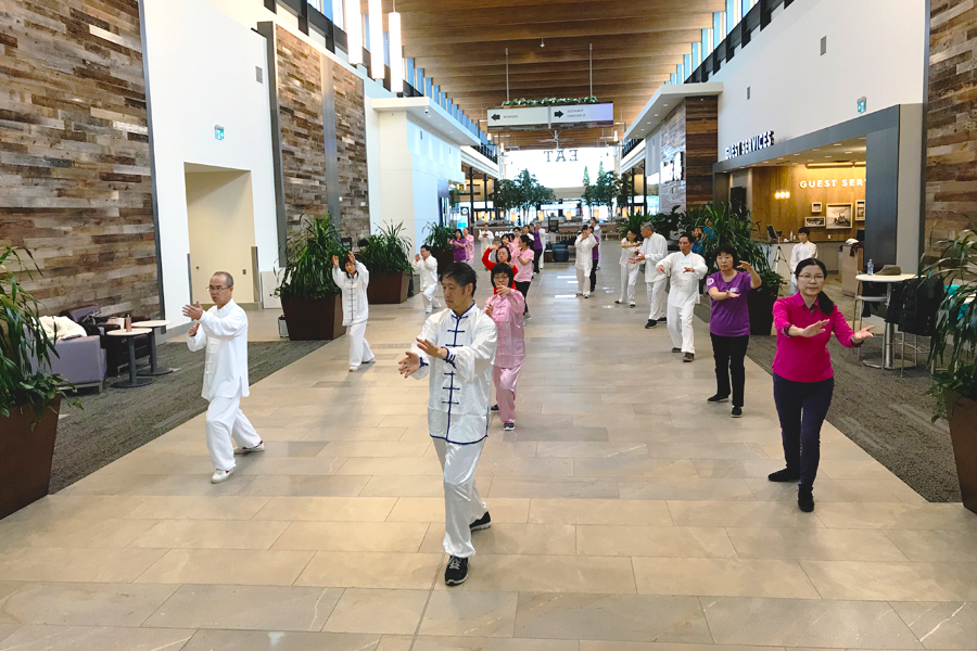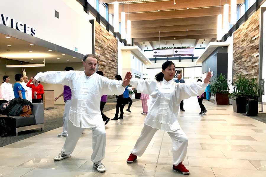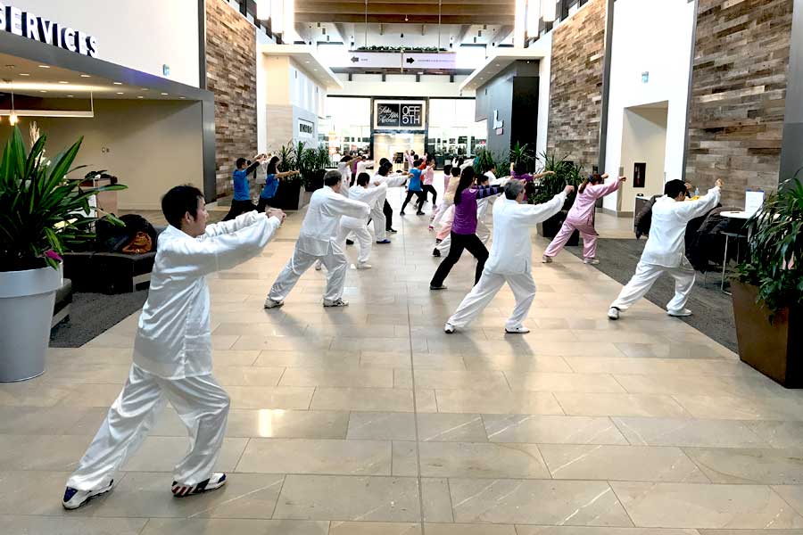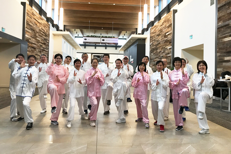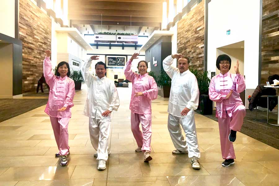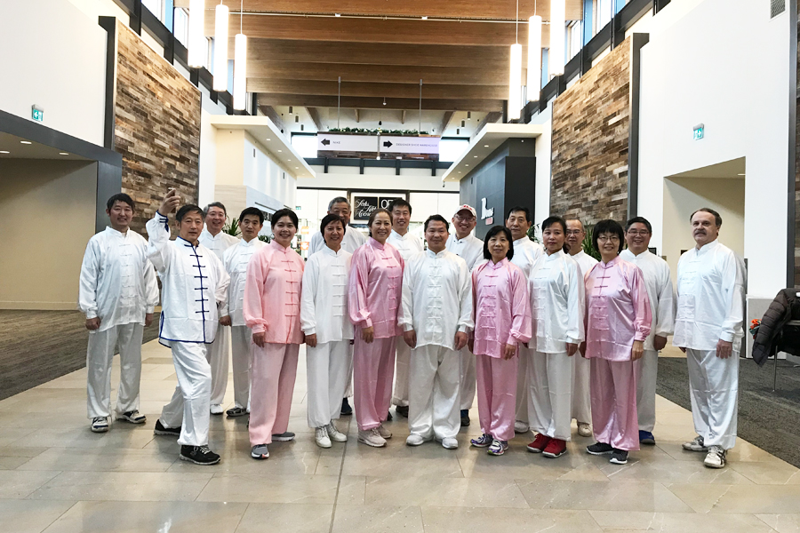 2018年九月份后,天气渐凉,室外已不宜于太极活动,经老年协会积极运筹,多方协调,为大家找到了极佳的室内练习场所。任凭室外寒风凛冽、大雪纷飞,室内仍温暖如春,闲庭信步。 每周日上午,拳友们兴致盎然,无论刮风下雪,自发地集合在训练场地,在彭继伟师傅的带领下,长袖舞拳,尽显仙风道骨,仙气飘飘。